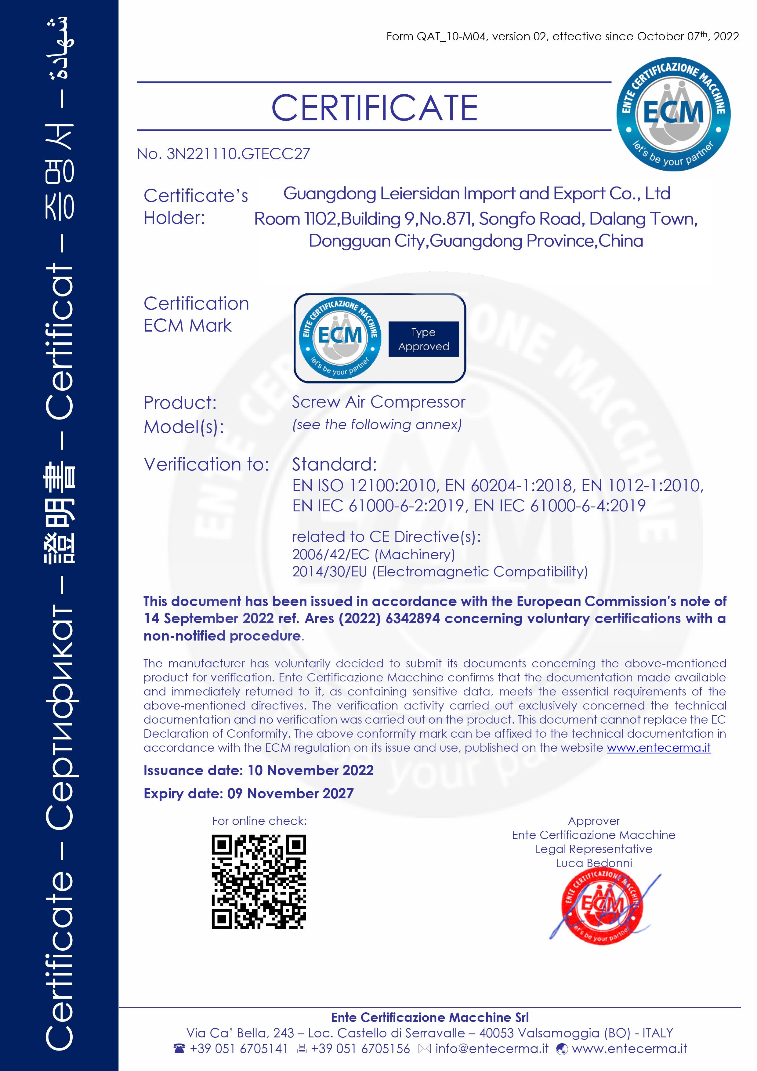 We have obtained a number of certificates: CE certification, ISO certification, ASME certification, UL certification, TUV certification, ETL certification, energy efficiency certification and so on.